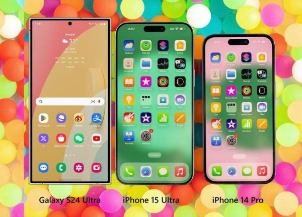 三星 Galaxy S24 Ultra、iPhone 15 Ultra 和 iPhone 14 Pro 对比