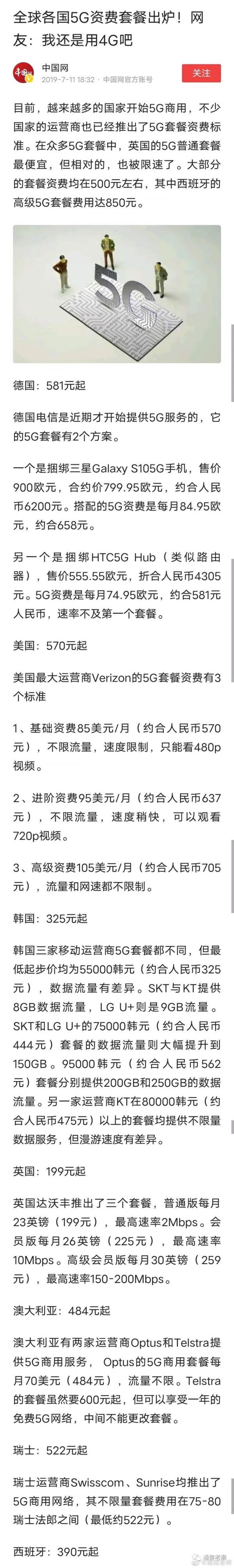 看完欧美发达国家的5G套餐,感觉咱们的运营商真正造福于民!