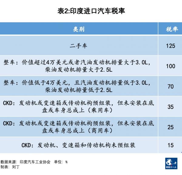 印度对于进口整车征收约70%~100%的关税,对于零部件进口组装(CKD)征收15%~35%的关税,但难题是:把零部件拆散到怎样的程度,才符合规定?