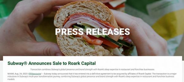 华尔街日报今天引述赛百味CEO John Chidsey表示,买家Roark Capital了解赛百味的业务。他表示,随着赛百味寻求未来几年在全球增加约 23,000 家餐厅,该公司将受益于 Roark Capital在特许经营、在线订单策略和国际市场拓展方面的专业知识。