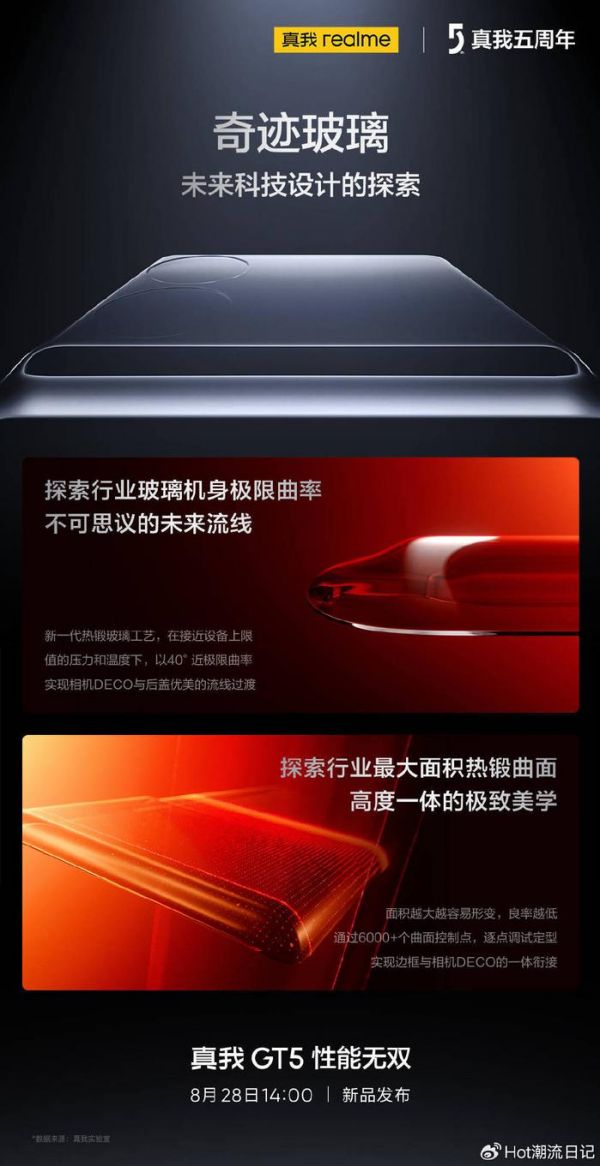realme 真我 GT5预热:全球首款“奇迹玻璃”手机,8月28日发布