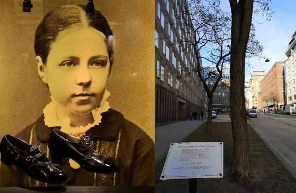 塞尔玛在斯德哥尔摩高师读书时的照片和灵光闪现的地方,左图下方是她当时穿的皮鞋 | 图源:作者摄