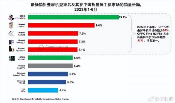 第一名:OPPO Find N2 Flip,市场销售份额13.1%