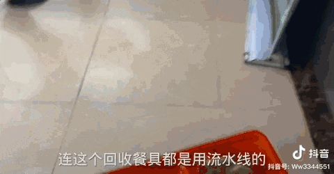 夜班之前,有一个小时的吃饭和休息时间,主播快速吃完之后,发出了感叹,连回收餐盘的设施都是流水线。流水线的一端,同样也是一批厨工,他们被精确规划了任务,有人倒掉厨余垃圾,有人清洗盘子。