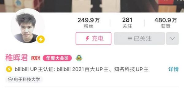 与此同时,作为知名UP主的稚晖君也在B站拥有了越来越多的粉丝,被粉丝称为“野生钢铁侠”。稚晖君在B站上发布了很多自研机器人的视频,点击量都高达上百万,例如3个月自制最小电视、甚至用吃剩下的螃蟹壳打造了一台可无线控制、可目标追踪、可激光测距的火星车……如今,稚晖君在B站拥有近250万粉丝。