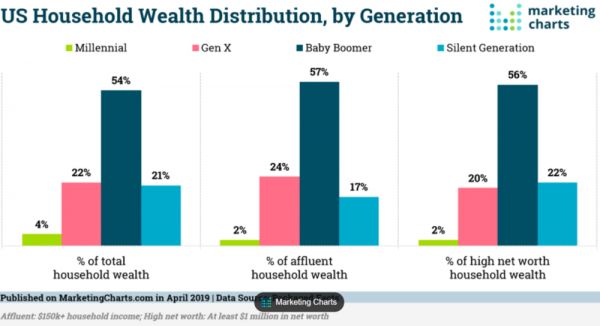 低利率下股票、债券、黄金都可以一直涨,但这天生就是不公平的,因为随着时间积累,年长的人会积累更多的股票和债券,所以美国的战后婴儿潮占据了绝大多数社会财富。