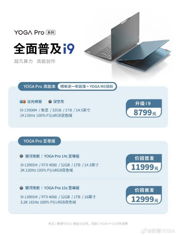 此外,YOGA Pro 14s / 16s 至尊版定制 i9 处理器 + RTX 4060 版本重回首发价,分别为 11999 元和 12999 元。