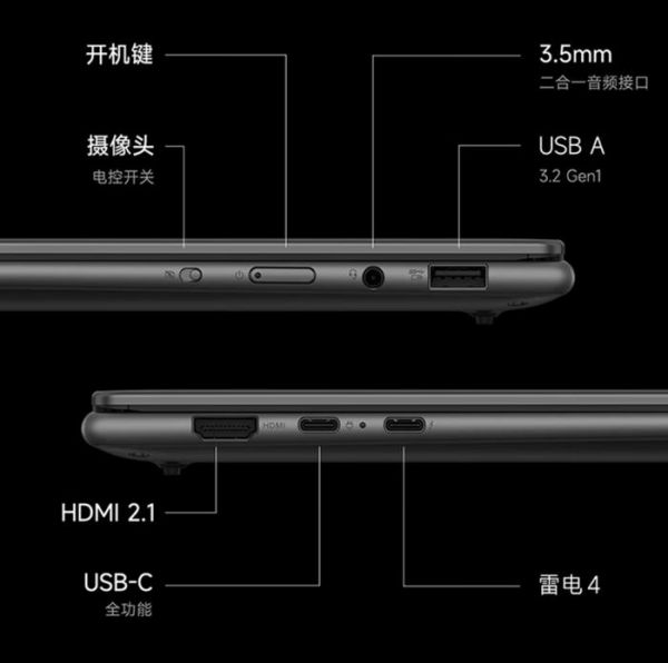 该笔记本配有 1080p 摄像头,接口包括雷电 4、USB-C、USB-A 3.2 Gen 1、HDMI 2.1、3.5mm 音频孔等。