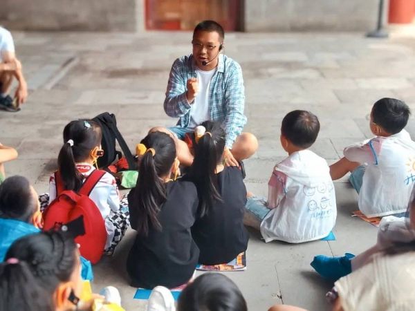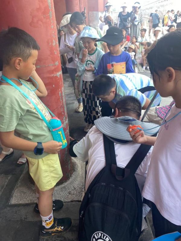 我现在带的研学团,一个团最多12个孩子,从6岁到12岁都有,加上家长不超过28人。一般都是妈妈带着孩子来,一个团能有5个爸爸算多了。最近的团,孩子年龄普遍偏小,甚至有的不满6岁,我会调侃几句,担心输在起跑线上,这么小就进故宫研学来了,可有点太着急了。