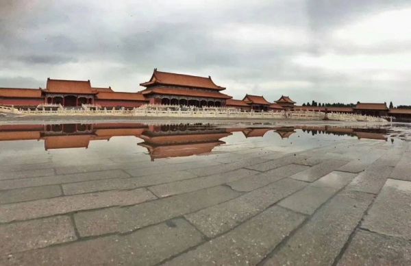 去年夏天,我在故宫也遇上过一场暴风雨,太和殿后边一扇门,“啪”一下直接给吹掉了,后来一有暴雨蓝色预警,几座大殿的门都得关好。