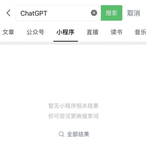 《IT时报》记者尝试在微信小程序中搜索“ChatGPT”,页面提示“暂无小程序相关应用,可尝试更换搜索词”。记者重新搜索“AI写作”,弹出来的相关小程序超过30个,但无法从字面及样式上判断是否为合格的AI应用。记者随机选择一款体验三次后便显示需要“充值19.9元成为会员”方可使用。