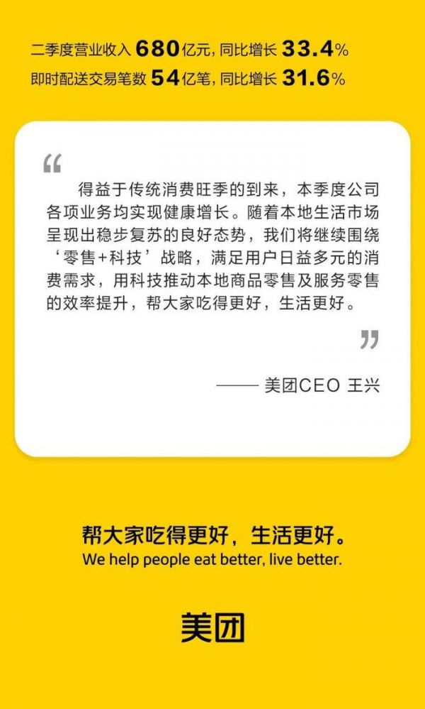 基于以上,再来看美团二季度的业绩表现,不难发现,美团守住了基本盘,呈现出了十足的韧性。