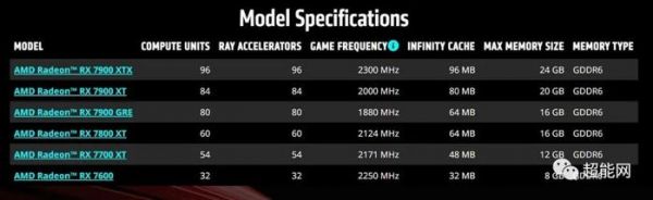 到目前为止,RDNA 3架构芯片总共有六款产品,分别是搭载Navi 31的Radeon RX 7900 XTX/XT、搭载Navi 31 XL的Radeon RX 7900 GRE、搭载Navi 32的Radeon RX 7800/7700 XT、以及搭载Navi 33的用于Radeon 7600。其中Radeon RX 7900 GRE较为特殊,仅局限于中国的DIY市场。