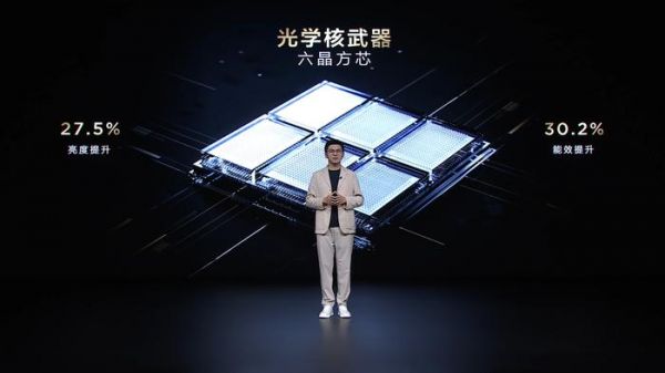(图源:TCL)峰值亮度上,TCL领曜X11G Max搭载Mini LED六晶方芯,发光点从前代的2个进化至6个,亮度提升27.5%。此外,TCL还采用了行业首创“控光灯塔”级别的光学影像微透镜,精准控光走线,解决行业的光晕难题。