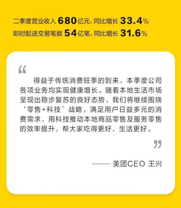 今年二季度,消费者对服务零售的需求大幅反弹,餐饮、出游、住宿、文体娱乐等消费需求旺盛。以“吃”为起点,扩展连接用户与“吃住行娱购”等多领域服务的美团,是服务零售重要的参与者,也在行业崛起中吃到了红利。