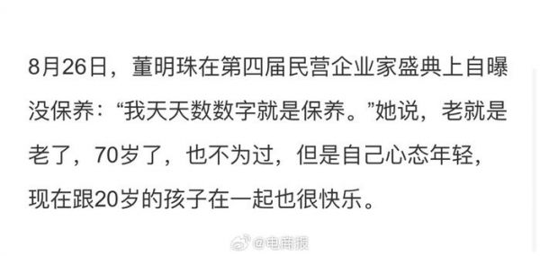 董明珠自曝70岁没保养,心态年轻也很快乐……