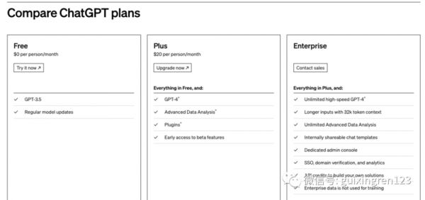 ChatGPT的三种订阅方式,图片来自OpenAI官方博客