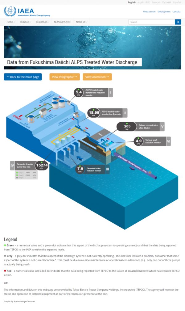 就福岛核事故善后事宜,IAEA 和日本政府建立了长达十数年的合作。IAEA 提供对福岛第一核电站核排放水的安全检查,并实时更新处理水的排放数据,包括水流量、辐射监测数据和稀释后的氚浓度。