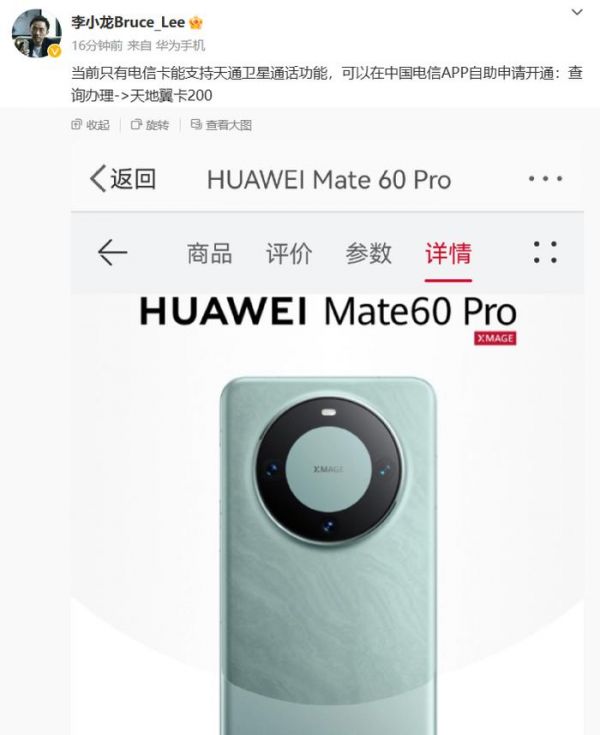 华为 Mate 60 Pro 手机处理器曝光,卫星通话目前仅电信卡支持