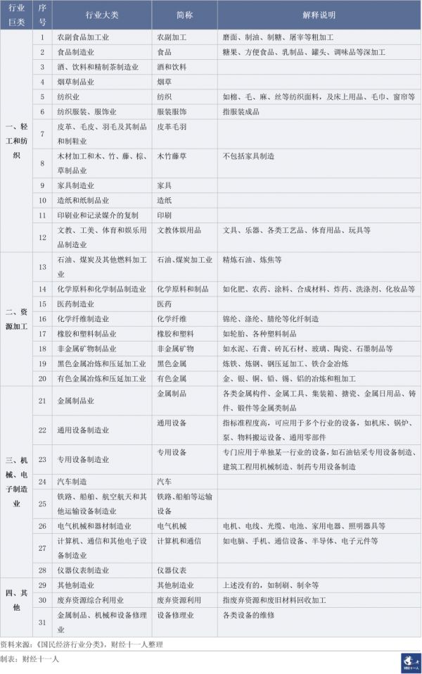 第一部分:为了便于讨论,先介绍一下中国制造业的行业分类;