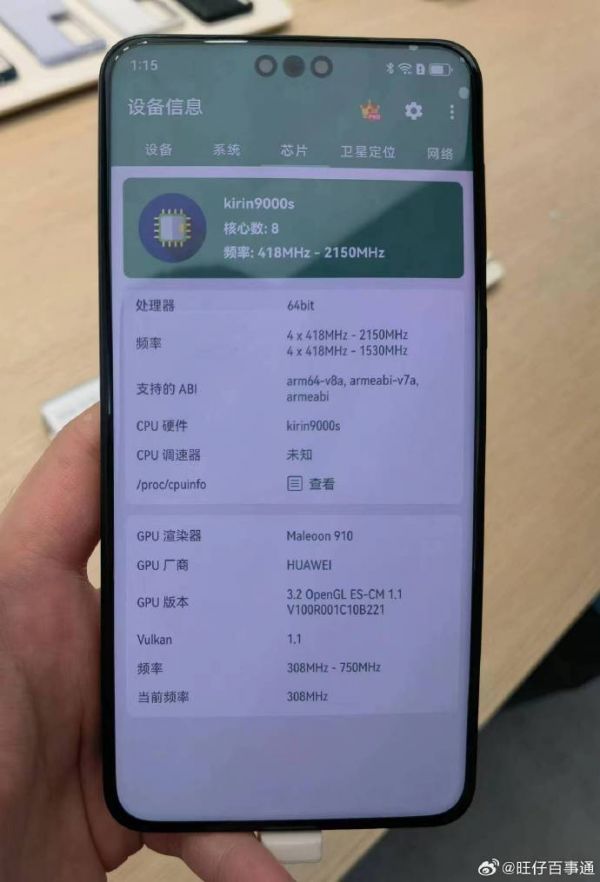 很多人相信,这款旗舰手机迎来了自家的麒麟芯片——麒麟 9000S,共有 8 个核心,包括 4 大核 4 小核,主频最高 2150MHz。GPU 则为 Maleoon 910。
