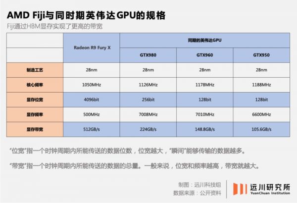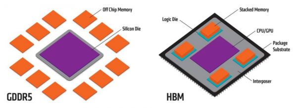 在当年发布的AMD Fiji系列GPU中,AMD采用了与SK海力士联合研发的堆叠式内存,并将其命名为HBM(High Bandwidth Memory)。