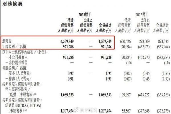 截至2023年5月31日的年度业绩报告显示,东方甄选商品交易总额达到了100亿元,总营收45.10亿元,同比增长401.9%。年内净利润9.71亿元,去年同期为亏损7099.4万元。