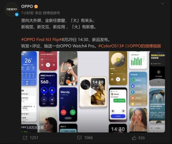 OPPO Find N3 Flip 折叠屏首次搭载专业人像镜头,8 月 29 日发布