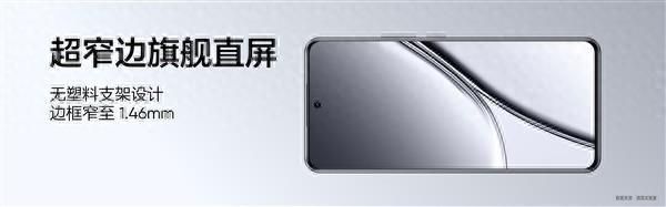 真我GT5新品亮相,采用1.5K 144Hz超帧光影屏,成为真我史上最强直屏。其边框缩窄至1.46mm,可能是行业内边框最窄的直屏旗舰。