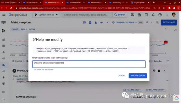 比如在 Cloud Monitoring 中,自然语言提示可以自动转换为 PromQL 查询来分析时间序列指标,例如一段时间内的 CPU 使用率等。Duet AI 还可以在日志资源管理器中提供复杂日志条目的直观解释,以便更轻松地进行原因分析,并提供如何修复错误报告中出现的问题的建议。