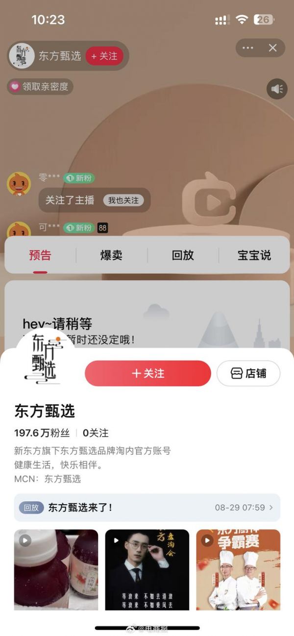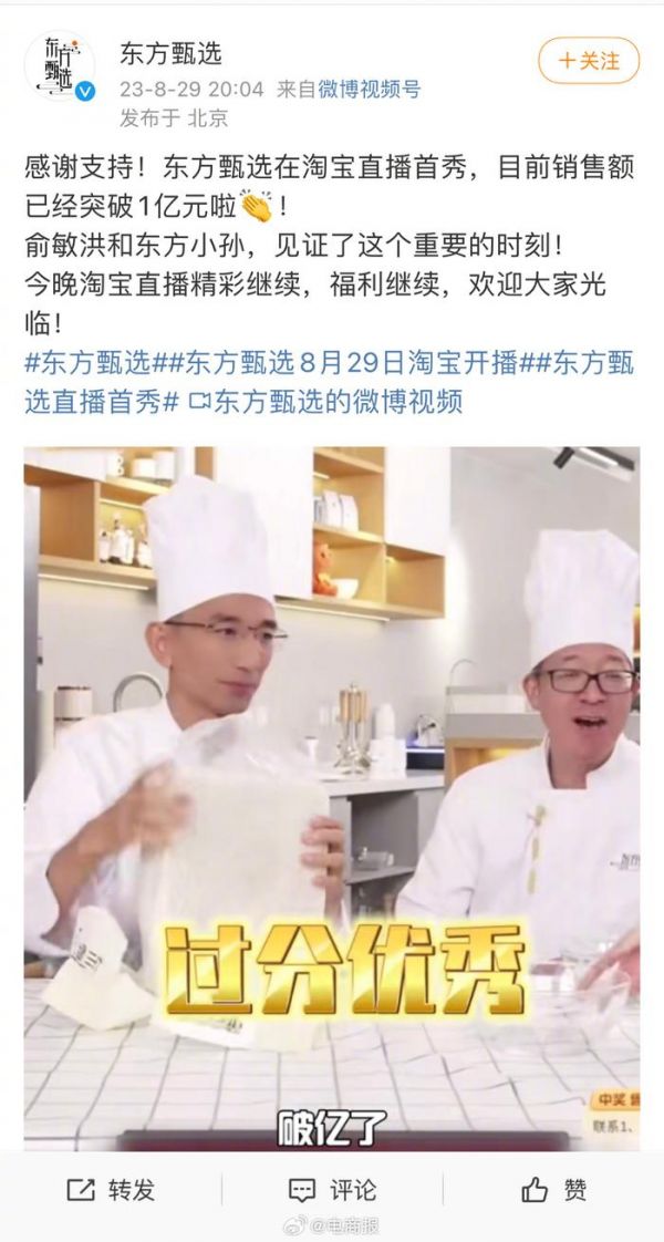 东方甄选淘宝首秀销售额10小时突破1亿元……