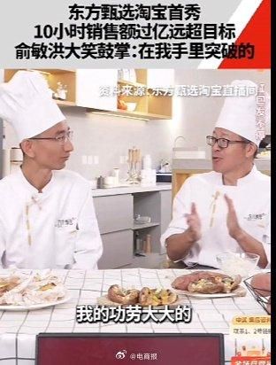#东方甄选淘宝首秀销售额破亿# 东方甄选淘宝首秀销售额10小时突破1亿元,俞敏洪大笑鼓掌:在我手里突破的!