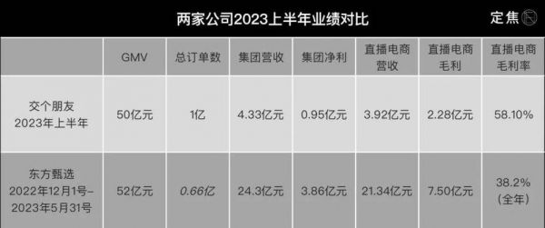 注:东方甄选的数据来自于2023财年年报(截至2023年5月31日)与2023财年中报(截至2022年11月30日)相减得出 / “定焦”制图