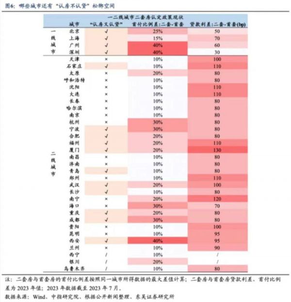 其中二线城市中的西安、南宁、 厦门,一线城市中的广州、深圳受二套房认定放松带来的利率与首付比例下降受益最大。
