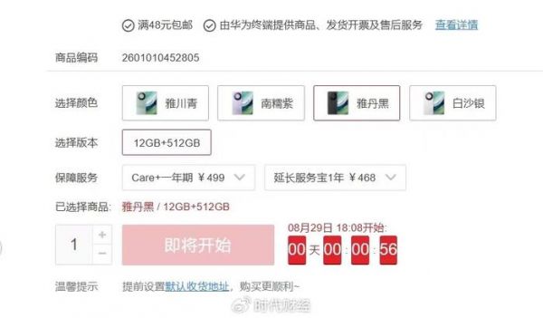 18:08抢购倒计时 图源:华为商城截图