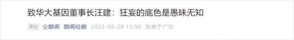 华大基因董事长汪建遭炮轰:肤浅、狂妄、愚昧无知