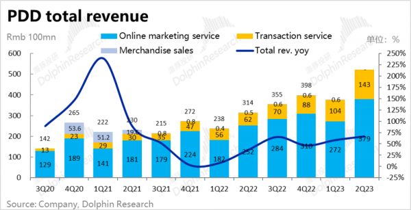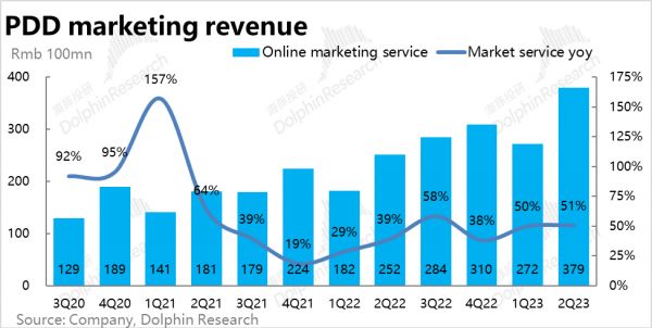 但实际上,拼多多的核心电商广告本季收入379亿元,超出市场预期的321亿近60亿元。同比增速也高达51%,增速不降反增,可谓击碎了市场对增长放缓的担忧。