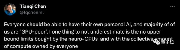 正致力于让手机跑大模型的知名学者陈天奇表示,未来每个人都会拥有自己的AI助手,其中大多数人都会是“GPU贫民”,但不要低估合起来的总量。