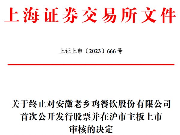 8月28日,上海证券交易所官网显示,因安徽老乡鸡餐饮股份有限公司(以下简称“老乡鸡”)及其保荐人撤回发行上市申请,根据《上海证券交易所股票发行上市审核规则》第六十三条的相关规定,上交所终止其发行上市审核。