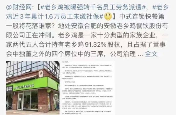 然而,去年6月份,老乡鸡却因为员工社保问题陷入舆论声讨中。据彼时长江商报报道,“或许是为了应对本次IPO,公司要求978名员工离职,改而通过劳务派遣形式继续在公司工作。近三年间,老乡鸡累计有1.6万名员工未缴纳社保”。