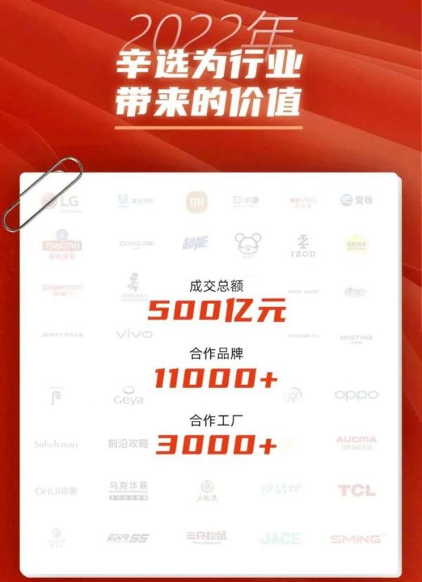 这份数据中,除了年成交总营业额500亿元之外,合作品牌超过11000个,合作厂家超过3000家等数据也相当亮眼。