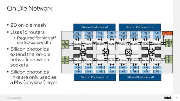 据介绍,英特尔已经部署了一个基于 16 个路由器的 2D on-die mesh 网状互连结构,其核心可以在系统内外相互通信,而无需添加其他网络功能。