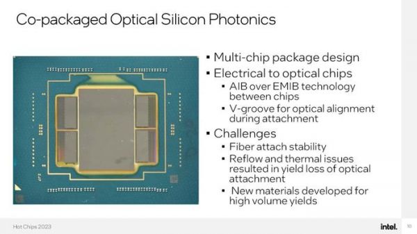 值得一提的是,这颗 CPU 虽然基于 RISC 架构,但它利用了硅光子学进行网络通信。也就是说,该 CPU 将以芯片组的形式出现,借助 EMIB 互连技术将光芯片连接到主 CPU 芯片上。