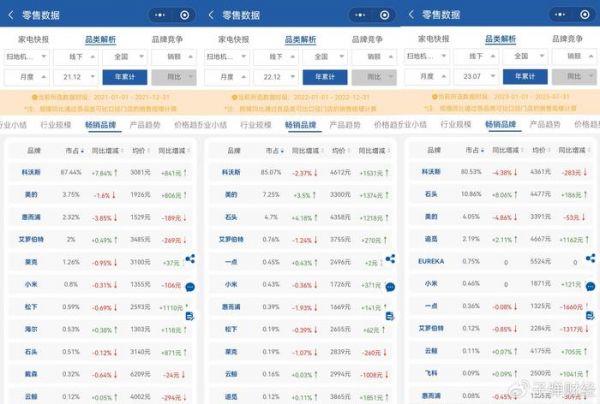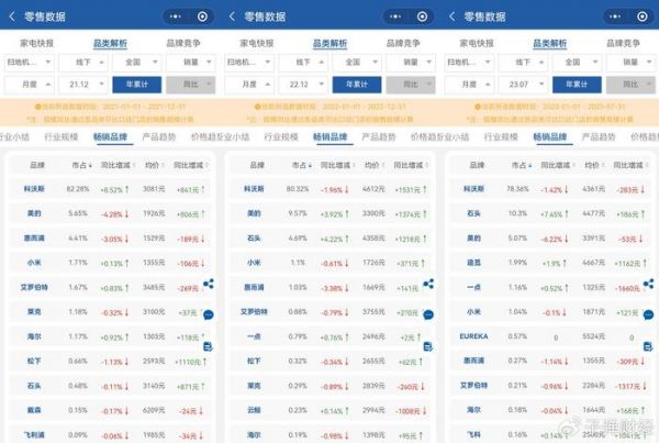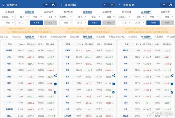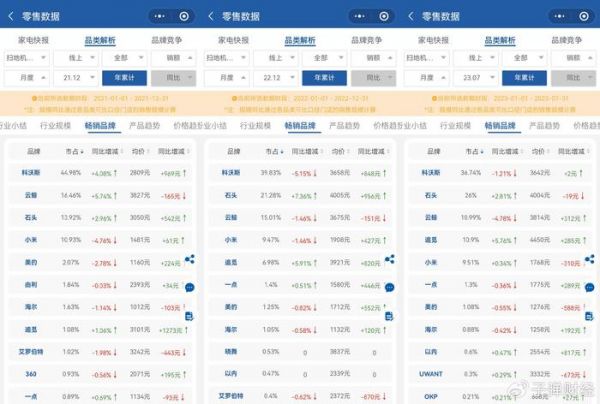 销售额方面,奥维云网数据显示,2021年、2022年和2023年前7个月科沃斯在扫地机器人线下市场的占有率分别为87.44%、85.07%和80.53%,也呈下滑态势。