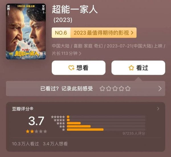 而又由于五部电影中,有一些口碑较差的影片赫然在列,不由又引发网友对其“把批评的声音当作水军”的质疑。比如《超能一家人》,豆瓣评分仅3.7,是暑期档较为“公认”的烂片之一。