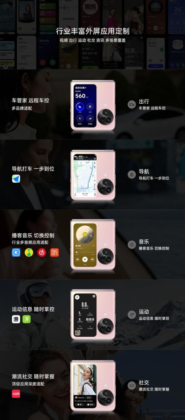 其他方面,该机采用了超轻固精工拟椎式铰链,基于航天级 MIM 合金材料,通过莱茵折叠无忧认证;搭载 0809 旗舰级 X 轴线性马达和杜比全景声立体声扬声器,预装 Color OS 13.2 系统,增加了三段式静音键设计,支持 NFC,而且外屏支持便捷小组件、灵动桌面、天气壁纸、互动宠物壁纸 2.0、任意窗应用中心。