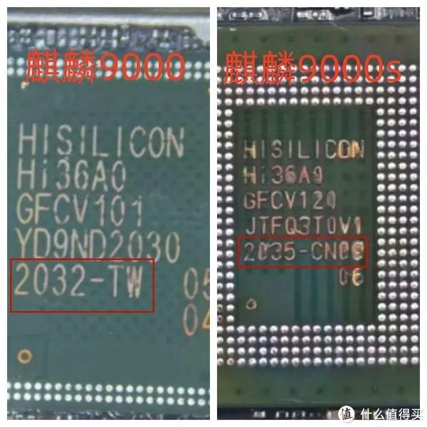从麒麟9000芯片和麒麟9000s的对比图来看,麒麟9000上的标志是2032-TW,也就是20年32周台湾产的意思,而麒麟9000s则是2035-CN,则是20年35周中国产的意思,如果从这点上去理解的话,那么20年35周产的一定是麒麟9000的半成品,否则不可能麒麟9000在一直有存货的情况下,一直不放出来卖。