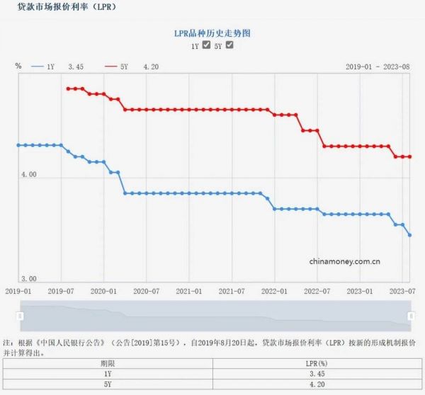 稍早之前,本月21日公布的最新LPR报价显示,1年期品种报3.45%,较上月下调0.1个百分点;5年期以上品种报4.20%,与上月持平。