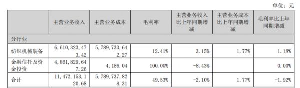 经纬纺机曾表示“在深耕纺机实业的同时,公司通过控股中融信托加强抵御单一业务风险”,如今却反受信托业务拖累。