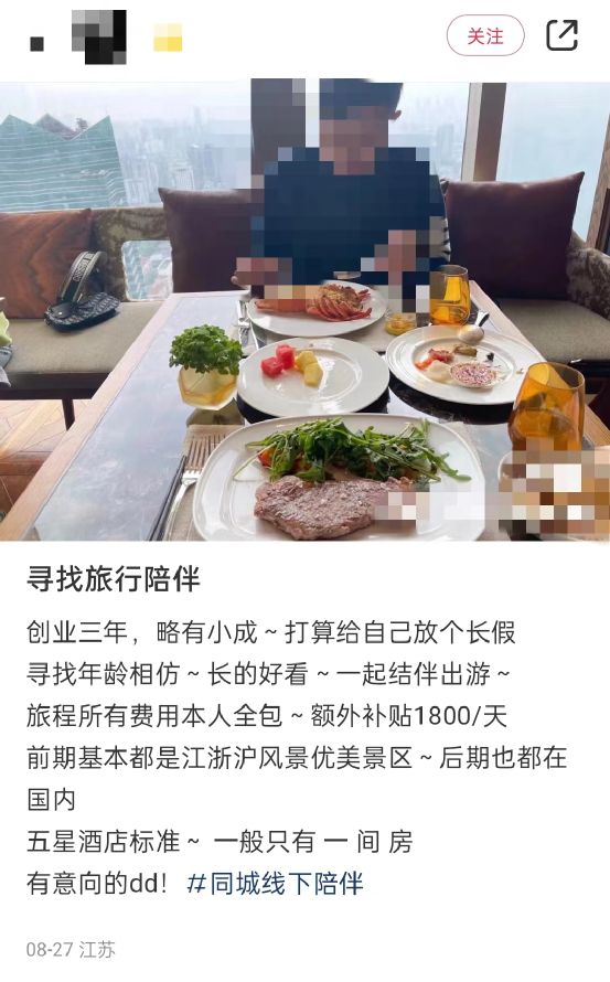 卧底小红书“旅游搭子”:“帮扶女人”、“吐金币”在暗示什么?